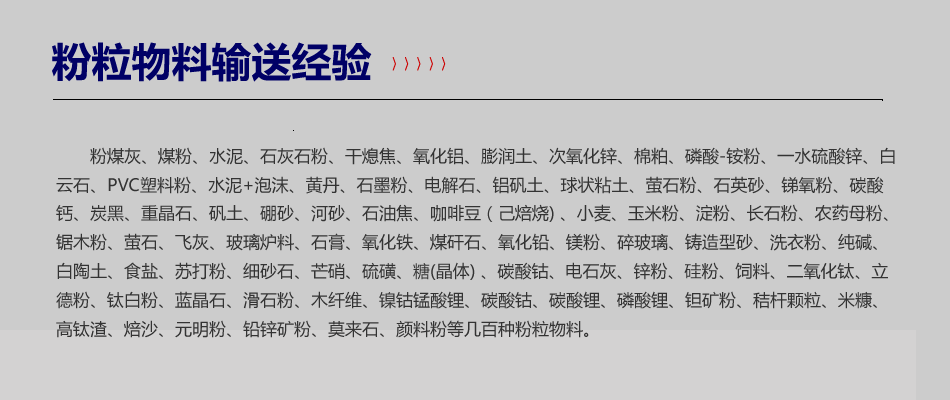 特種水泥 產(chǎn)量15t/h 當(dāng)量距離150m 粉煤灰 產(chǎn)量30t/h 當(dāng)量距離220m 電石灰 產(chǎn)量30t/h 當(dāng)量距離220m